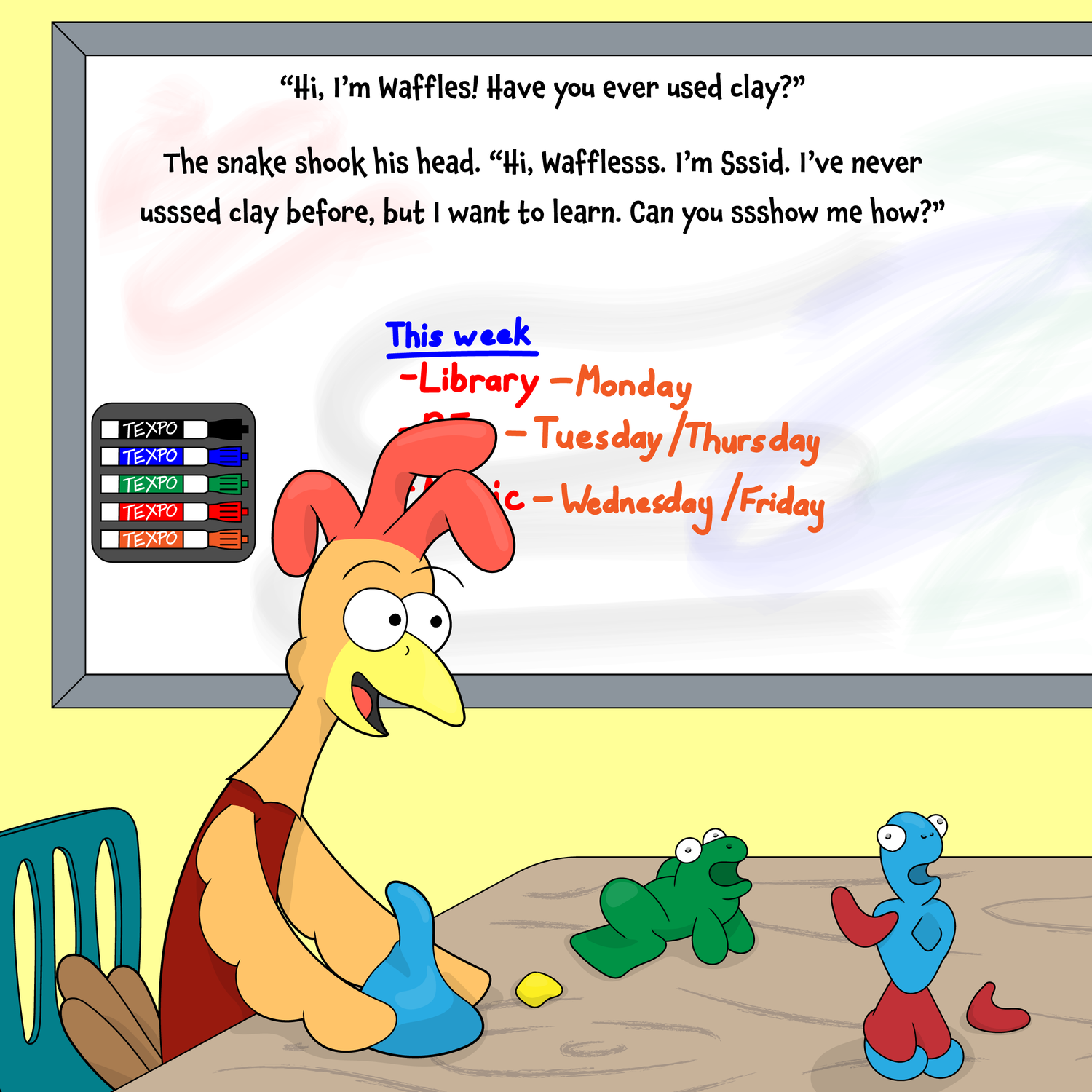 Will Waffles learn to get over his classroom jitters?